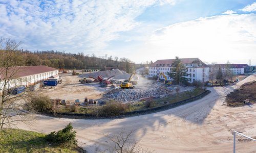 In den letzten beiden Jahren ist im Ludwigshöhe Viertel enorm viel passiert. Der Start der Abrissarbeiten 2020 hat jetzt dazu geführt, dass wir im Frühjahr 2022 wirklich durch sind. Alle Gebäude sind abgerissen, bis auf die vier denkmalgeschützten Gebäude, die ja den neuen Platz bilden. Das heißt, unsere Planungen sind gut. In der Zeit ist auch wichtig. Und im Mai? Tatsächlich wurden auch mit den Bauarbeiten begonnen.