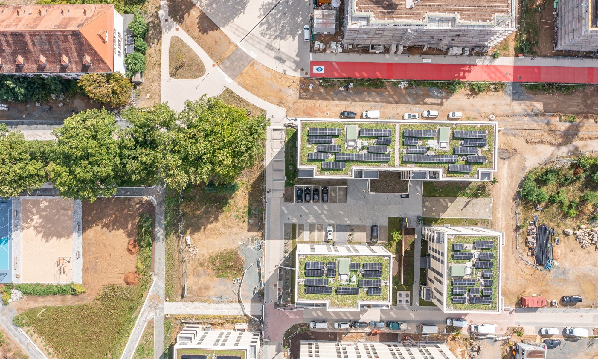 Wir haben versucht, mit unserem Fußabdruck der Gebäude ganz klein zu bleiben, also möglichst viel Freifläche unversiegelt zu lassen und haben es eben auch geschafft. Dadurch, dass wir eine Fassadenbegrünung haben, begrünte Dächer haben und eben diese großen Freiflächen nachweisen können, dass man ein Mikroklima schafft, das für die späteren Bewohner eine wahnsinnig hohe Lebensqualität bringt.